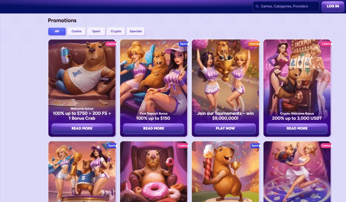 New players can grab a solid bonus offering 100% up to $750 while also adding up to 200 free spins. You’ll also find a good collection of ongoing rewards, including free spins, tournaments, challenges, and reloads. Spinbara stands out with a collection of 8,500+ games covering slots, table games, instant wins, crash games, and live dealers.