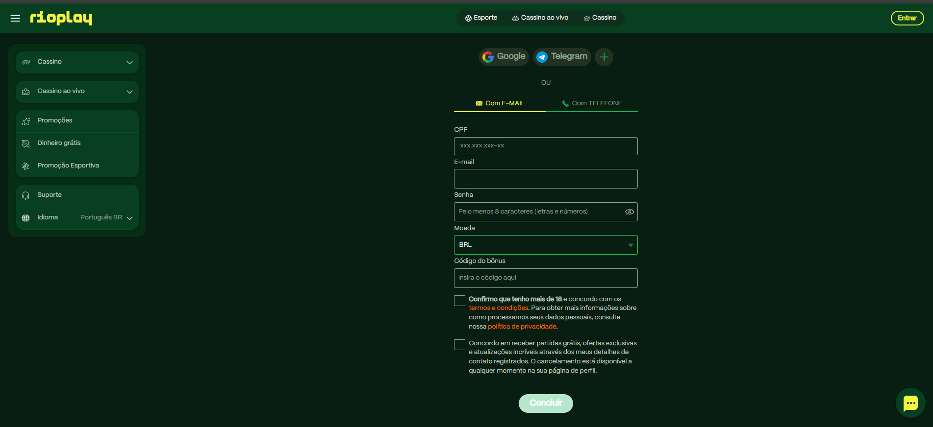 Toda a intuitividade e boa experiência de usuário do RioPlay Casino fica clara desde o cadastro. É realmente rápido, sem exigir vários passos apenas para alguns poucos dados, desse modo: