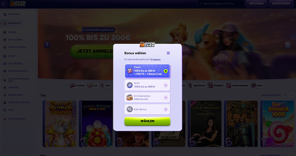 Im SpinBara Casino erwartet dich eine riesige Auswahl an Spielen – von spannenden Online Spielautomaten über actiongeladene Live-Games bis hin zu Jackpot-Hits mit echten Gewinnchancen für jeden Spielertyp.