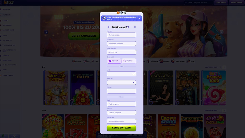 Fertig! Danach kannst du deine erste Einzahlung tätigen und direkt loslegen. In meinem SpinBara Test hat mir besonders gefallen, dass der gesamte Prozess flüssig, schnell und selbsterklärend abläuft – perfekt für spontane Spielrunden oder neue Spieler, die ohne Umwege starten möchten.