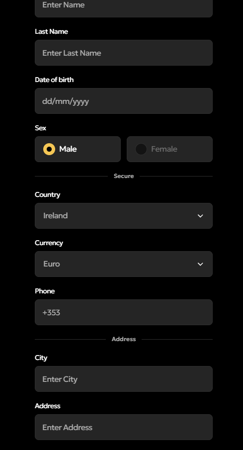 - Fill in the required information like your name, date of birth, address, preferred currency and phone number.