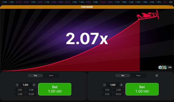 Eftir að vélin tekst á loft, skaltu fylgjast með margföldunarstuðulinum hækka eftir því sem flugvélin flýgur hærra. Eftir því sem flugið hækkar, hækkar stuðullinn sem skilar stærri mögulegum vinningum.