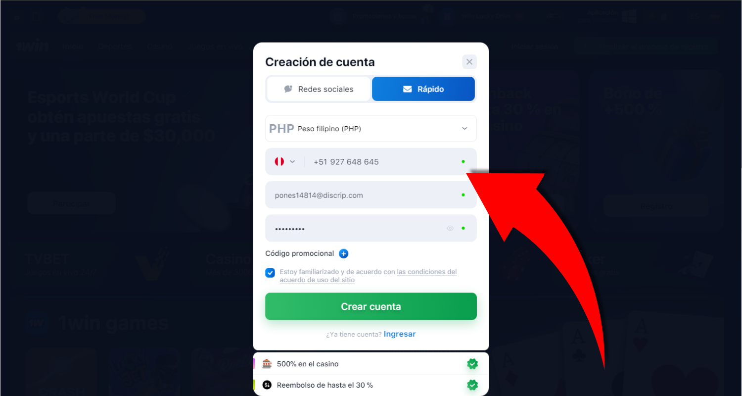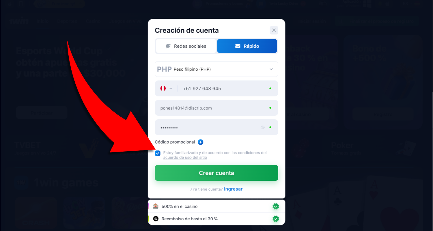 | Sitio web oficial | 1win.pe |
