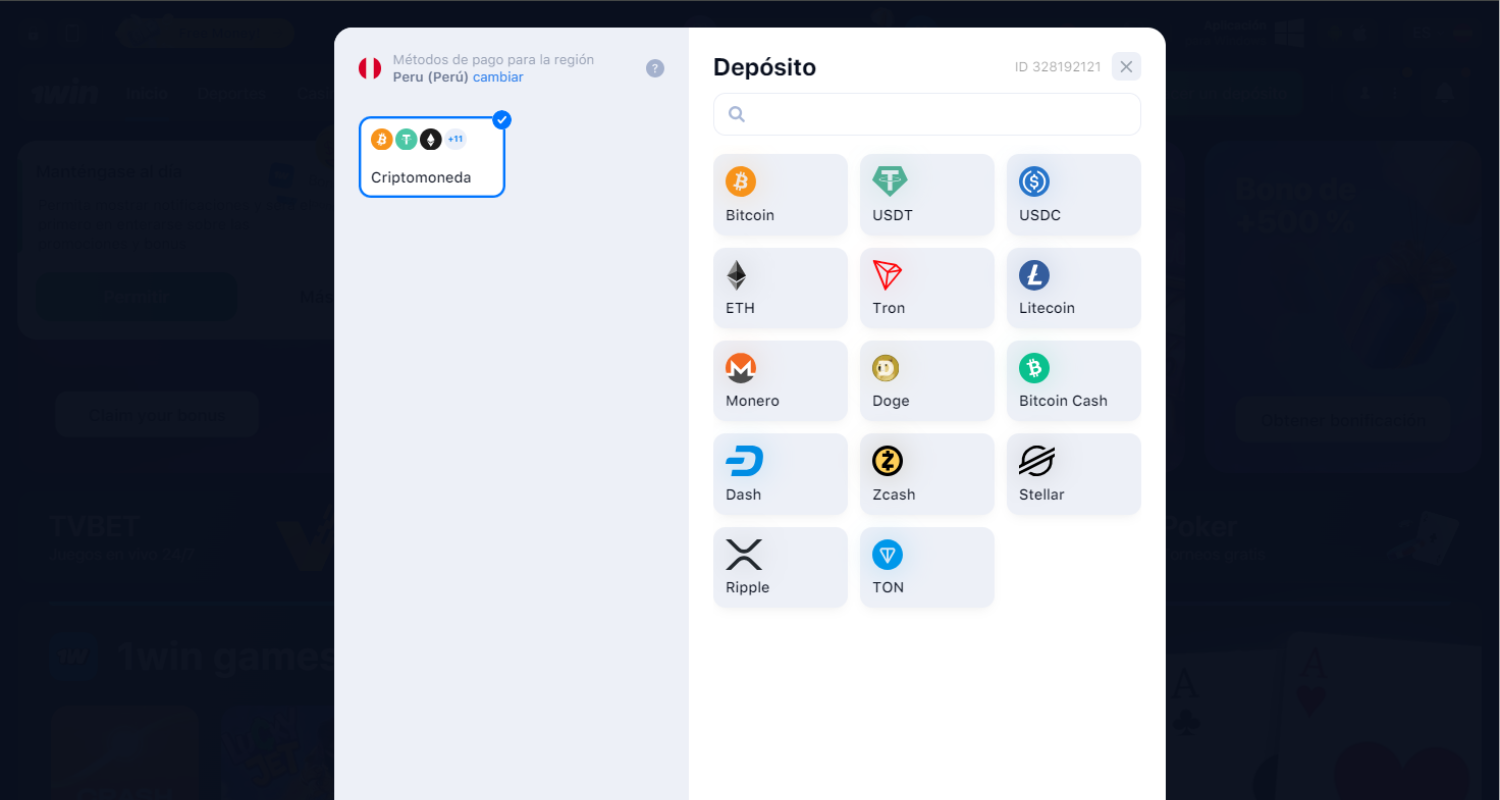 1win Métodos de pago del casino en Perú