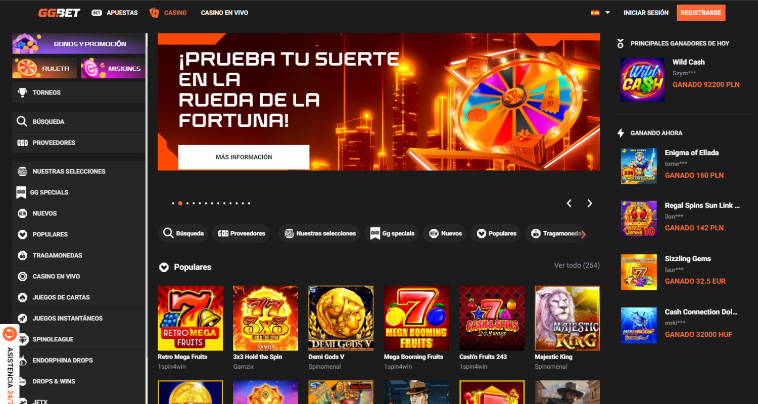 El catálogo de GGbet Casino cuenta con más de 2.000 juegos de los principales proveedores mundiales y locales. Todos los juegos cuentan con certificación independiente y están disponibles en español. Para los nuevos usuarios, hay un modo demo que permite probar las tragamonedas sin depósito. El catálogo tiene filtros por género, proveedor, novedades y juegos populares. El casino está adaptado a las necesidades de los jugadores peruanos: todos los juegos funcionan sin problemas en dispositivos móviles y de sobremesa, admiten apuestas en soles y cuentan con una interfaz de alta calidad.
