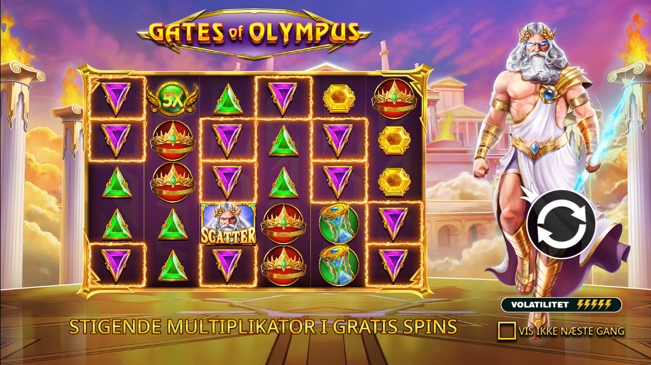 La tragamonedas Gates of Olympus transporta inmediatamente a los Jugadores al mundo de la mitología griega. El campo de juego está formado por colores dorados y púrpuras, y tiene como telón de fondo la hermosa casa de Zeus.