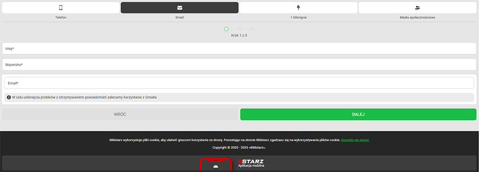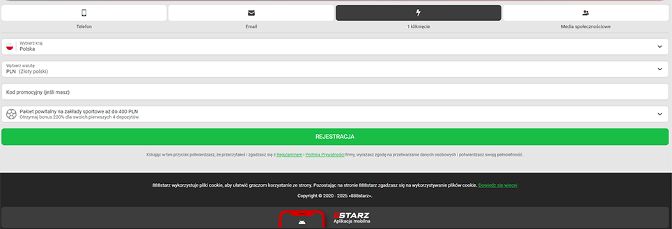 Proces rejestracji w 888Starz Kasyno jest prosty, intuicyjny i zajmuje zaledwie kilka minut. Strona prowadzi Cię krok po kroku, umożliwiając szybkie założenie konta i wybór najbardziej dogodnej formy logowania.
