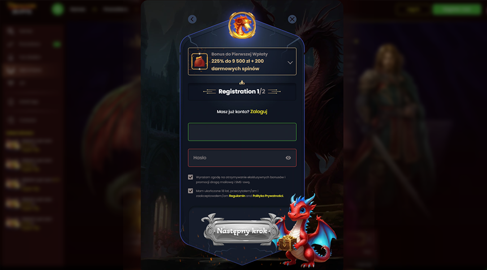 Proces rejestracji w Dragonslots Kasyno jest prosty, szybki i intuicyjny. Całość zajmuje tylko kilka minut i nie wymaga skomplikowanych działań. Dzięki temu możesz niemal od razu przejść do gry i korzystać z bonusów powitalnych.