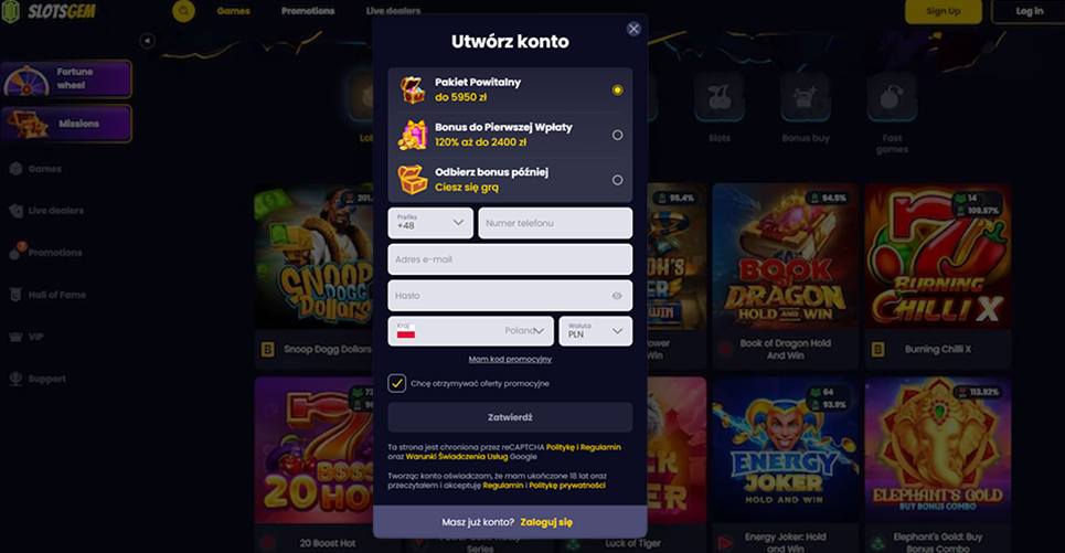 Mój werdykt Slotsgem Kasyno opiera się na kilku mocnych stronach, które zauważyłem już po pierwszych testach. Proces rejestracji jest błyskawiczny, bo wystarczy numer telefonu, e-mail i hasło, a konto działa w kilka sekund.